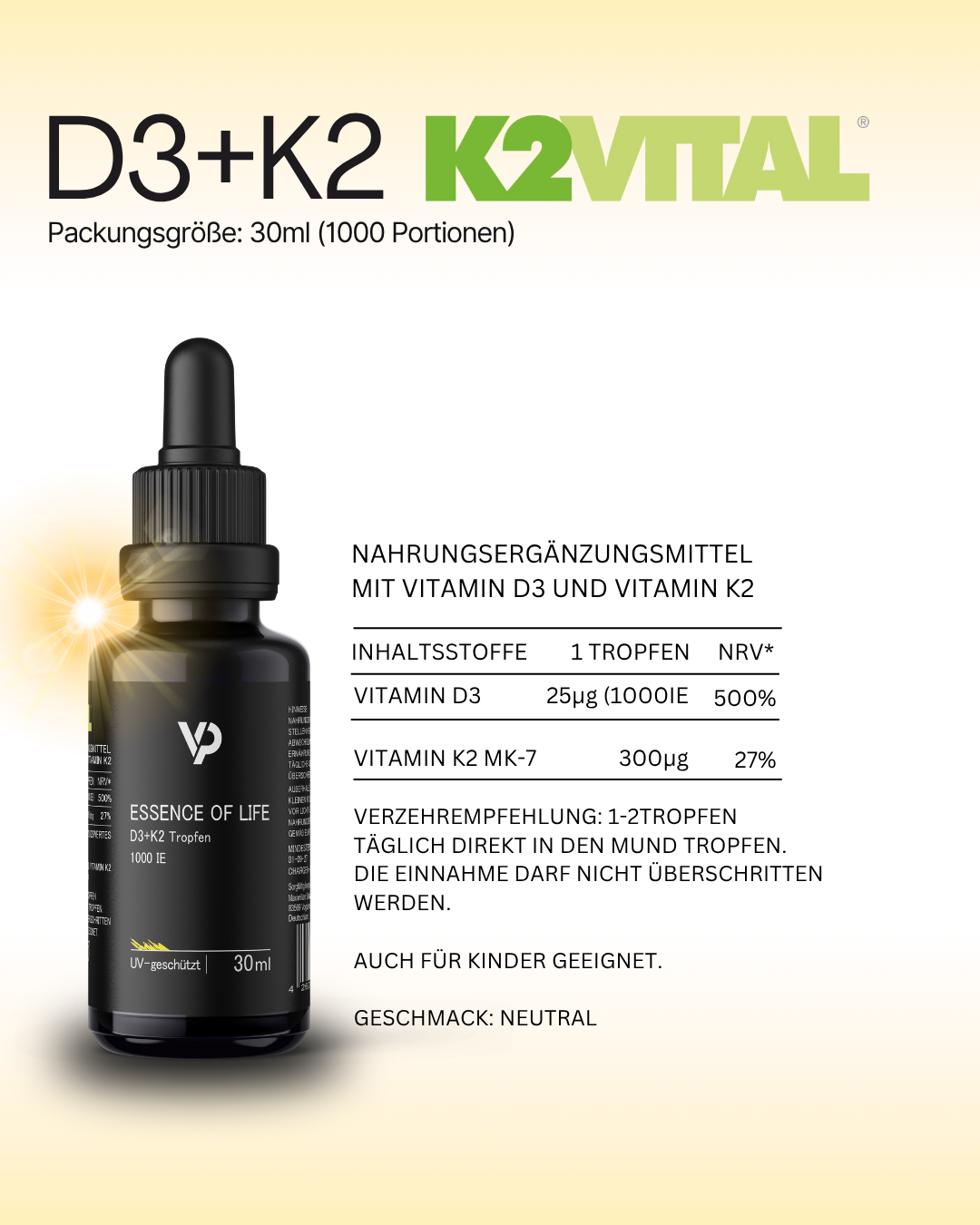 VatePro D3+K2VITAL – natürlich in höchster Reinheit
