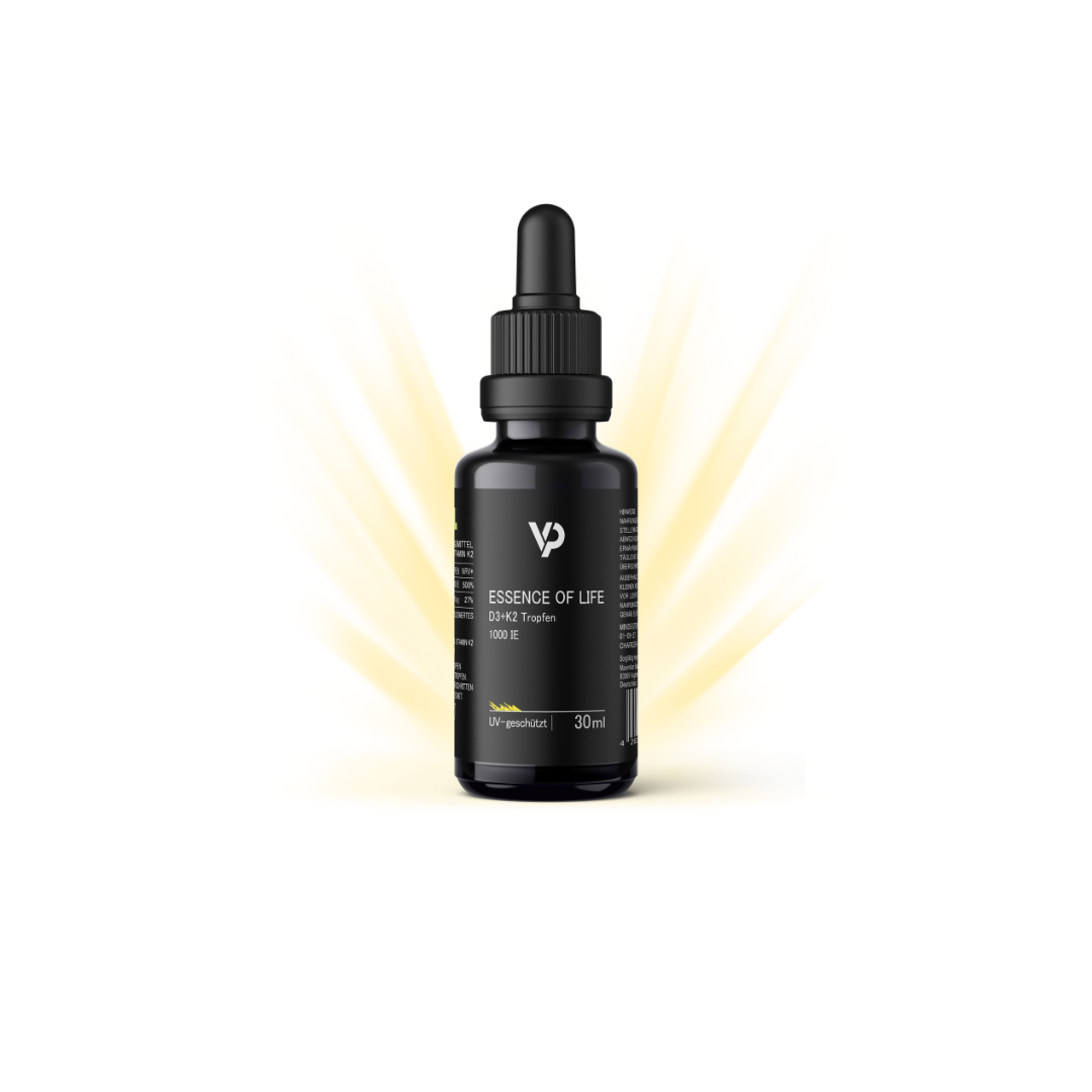 Das Sonnenvitamin D3 in Kombination mit Vitamin K2. Wir benötigen alle entsprechend viel Sonnenlicht und ausgewählte Lebensmittel (zB: fetten Fisch, Eigelb), um ausreichend mit Vitamin D3 versorgt zu sein. In unserer heutigen Zeit wird dies allerdings aufgrund diverser Umwelteinflüsse immer schwieriger. Mit unseren D3+K2 Tropfen bist du 24/7 das ganze Jahr über bestens versorgt - mit nur 1 Tropfen täglich gibst du deinem Immunsystem den nötigen Kick.