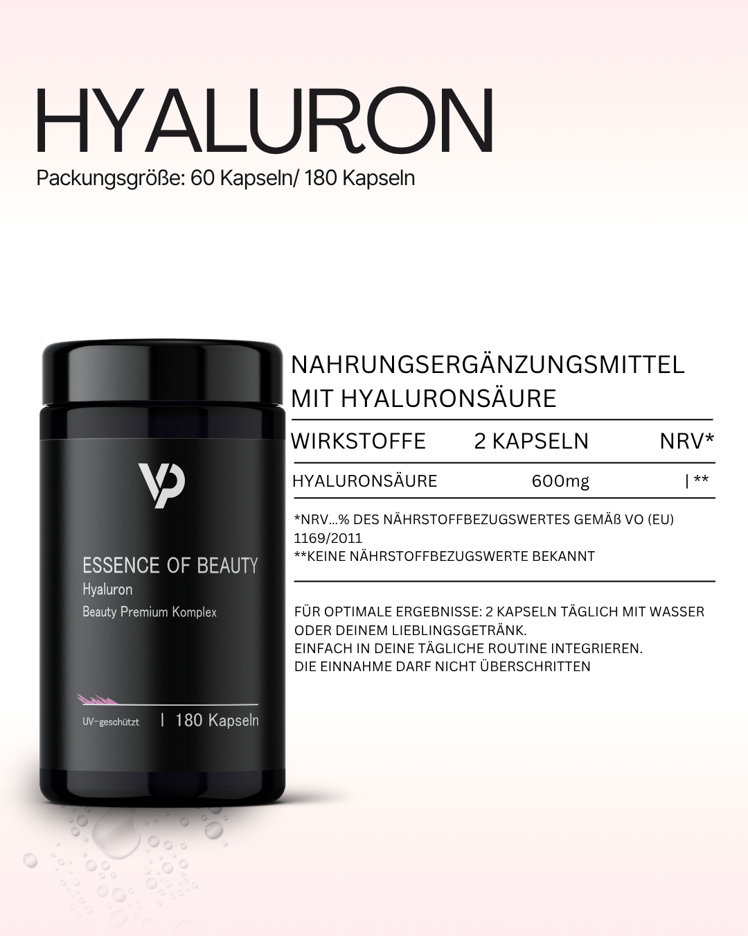 600 mg reine Hyaluronsäure für strahlend glatte Haut und geschmeidige Gelenke