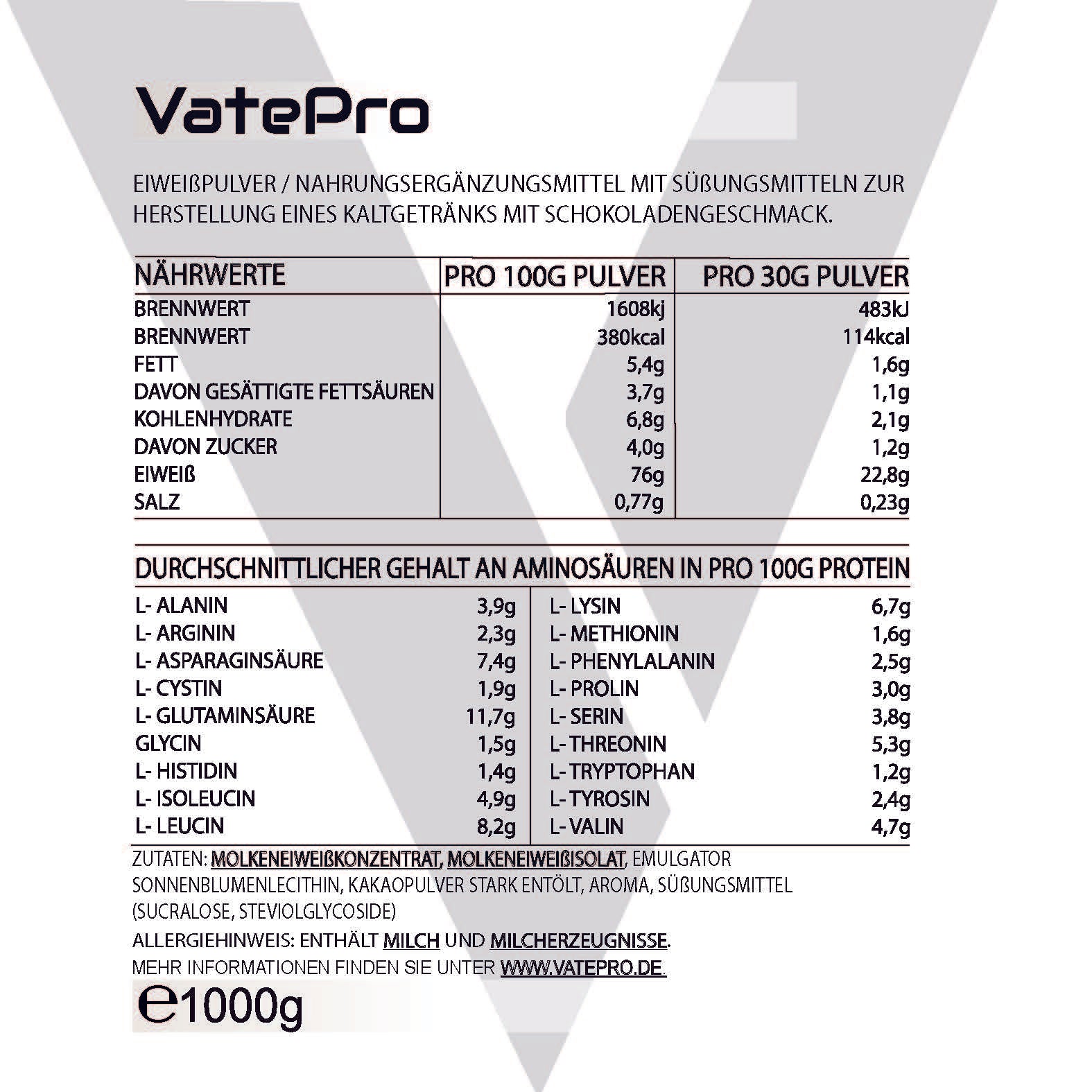 Molkeneiweißkonzentrat Instant (enthält Emulgator Sonnenblumenlecithin), Molkeneiweißisolat Instant (enthält Emulgator Sonnenblumenlecithin), Kakaopulver stark entölt, Aroma, Süßungsmittel (Sucralose, Steviolglycoside)