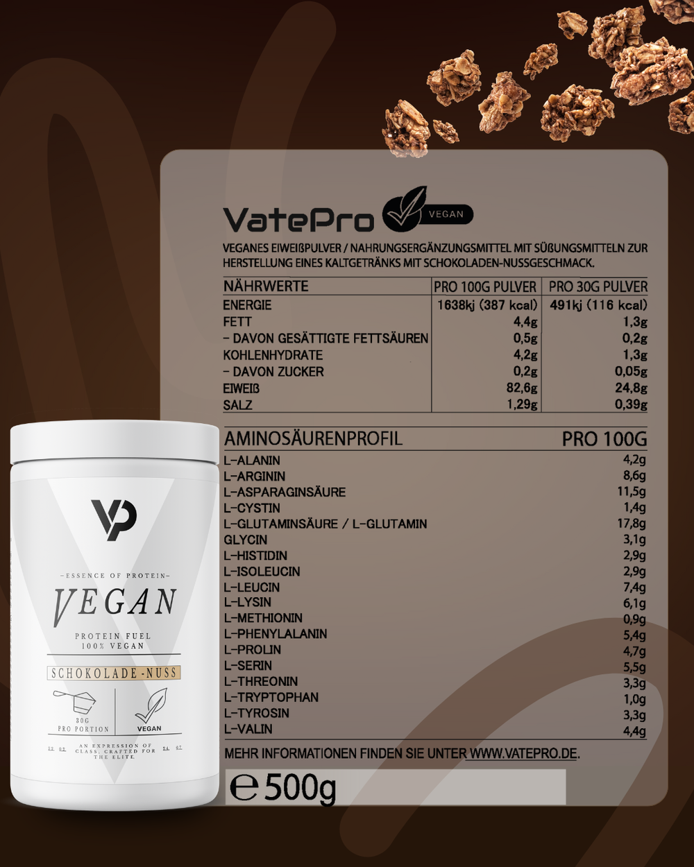 Veganes Protein – Schoko Nuss – 100 % pflanzlich. 100 % Geschmack.